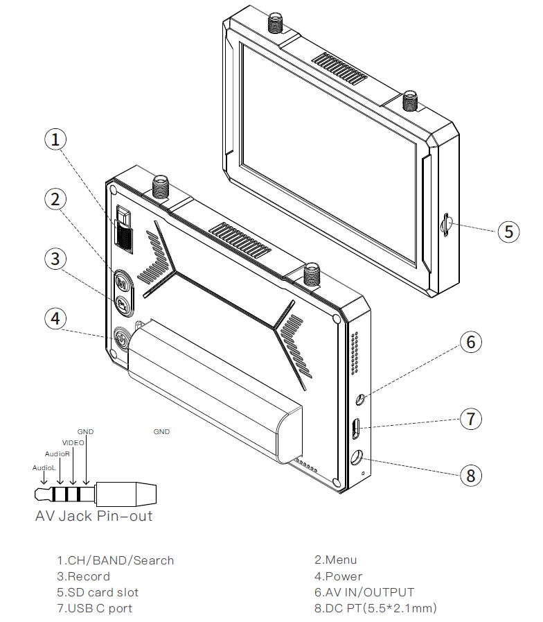 Take your FPV experience to new heights with the SKYZONE M5 monitor and its versatile power options! Use a 2-6S LiPo via the XT60 power cable, USB-C power supply, or 18650 Lion battery to keep the action going.